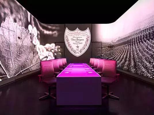 光影把我們的名字投影到了餐桌上,我們按照指示坐下來。燈光漸暗,好戲即將上演。然后,讓所有人大開眼界的一刻出現了——四面墻上的大屏幕突然亮起。