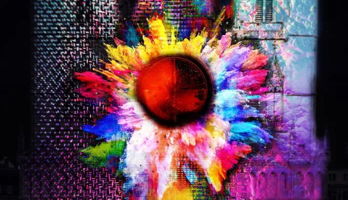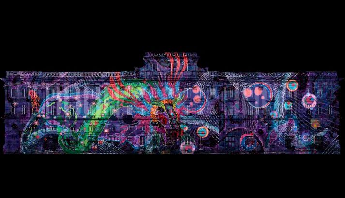 首先是里昂主教座堂的燈光展《虹膜》,該作品靈感來源于十九世紀象征主義畫家,通過用燈光詮釋人眼對光線和色彩的感知,去模仿生物的虹膜結構,用燈光模仿眼睛的運作。還有里昂共和國廣場水池上方懸掛56個燈框、塞萊斯廷廣場的直徑八米的燈光穹頂、路易普拉代勒廣場的霓虹彩鳳凰以及沃土廣場上的燈光展《月亮上的兔子,一只來自墨西哥神話中的兔子,等等。