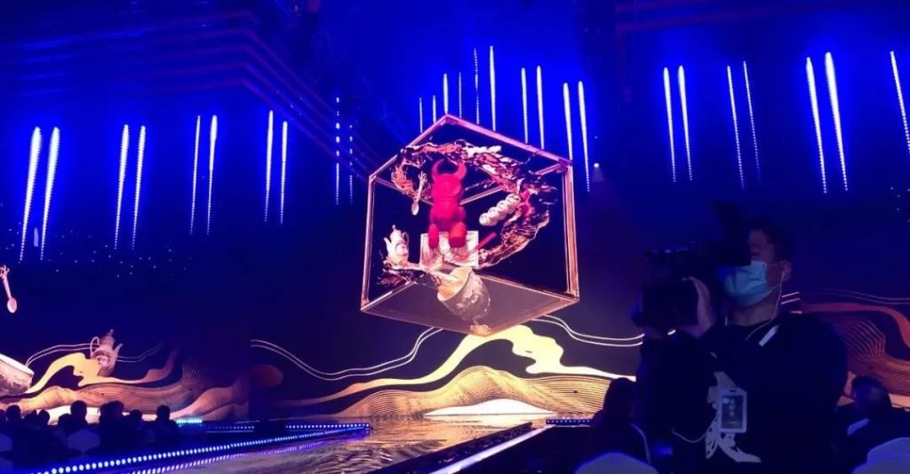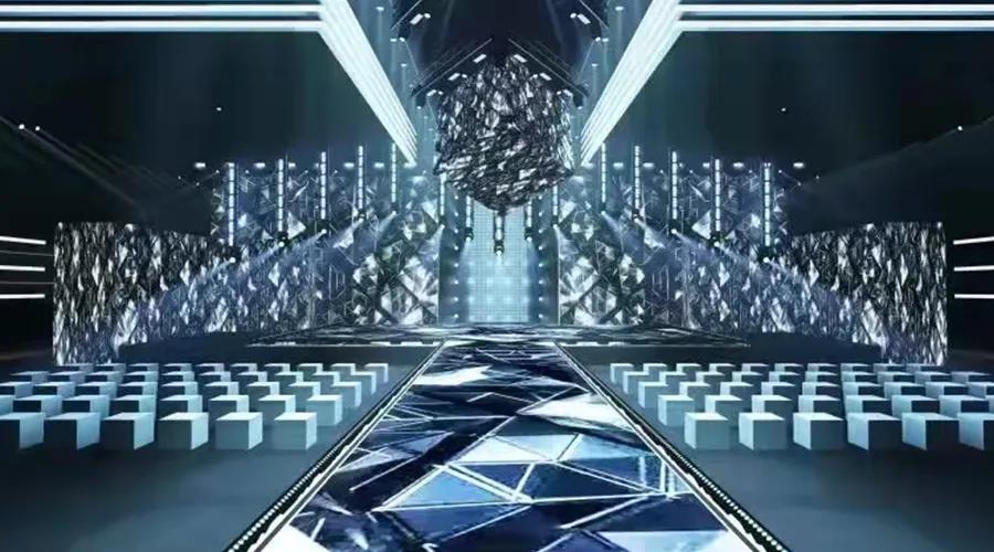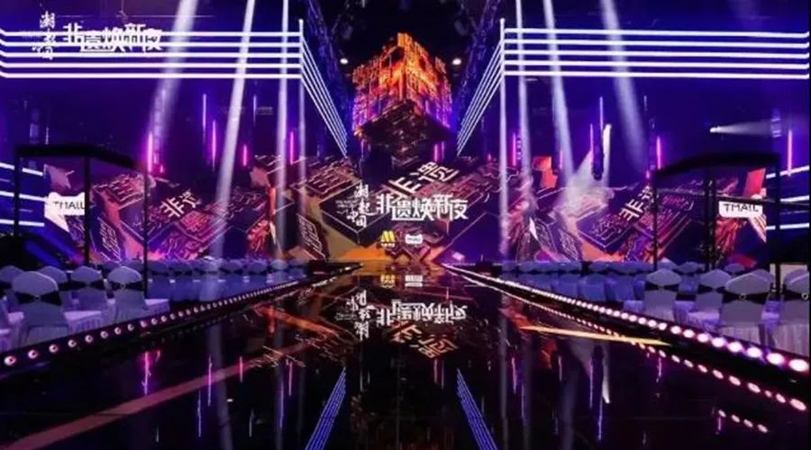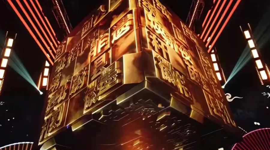 在舞臺設(shè)計整體制作上,它以非遺文化為內(nèi)核,采用開合背景大屏與兩側(cè)包圍式的側(cè)屏形式烘托起中央具有裸眼3D效果的升降魔方,LED地屏與頂部旋轉(zhuǎn)燈架相互配合背景屏幕影像與地面倒映交相輝映,締造傳統(tǒng)與潮流相結(jié)合的數(shù)字舞臺視覺。