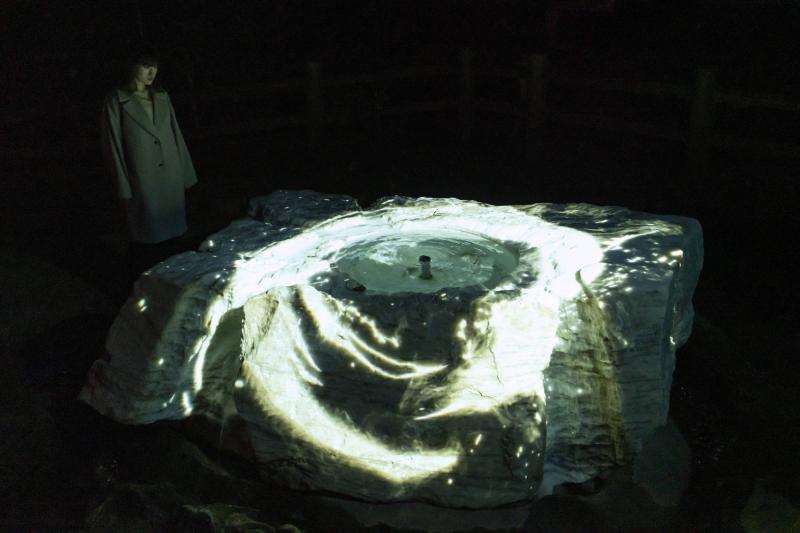 其中包含作品:Autonomous Resonating Life and Resonating Giant Cedar Forest(直立并呼應的生命和呼應之巨杉林),當發光的蛋狀物被人推倒或被風吹倒時,會一邊恢復站立一邊改變光的色彩,并且發出此色彩特有的音色。光芒也會傳播給周圍的蛋狀物和樹木,被傳播的光會使之發出相同的音色,呼應并擴散開來;Walk, Walk, Walk – Moso Bamboo Forest(走,走,走──孟宗竹林),在這個作品中登場的人物,一邊不斷地與各種各樣的事情對峙,一邊無止境的行走著。觀眾們也會隨著作品世界中登場人物們的追趕,逐漸與之形成對峙的局面。或者說,他們會和一路走來的每一個登場人物形成對峙。