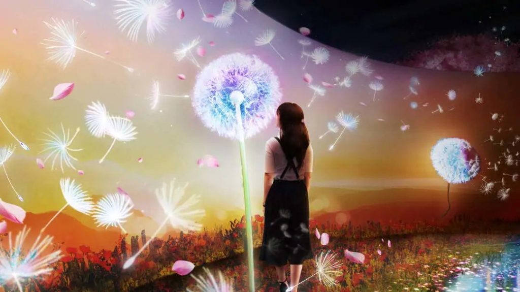 游客將在此欣賞一個融合鮮花和藝術的世界,據悉本次活動共有四個體驗場景供游客選擇;在發光花園中,游客能感覺到四周都被光芒照射,就像是置身于一個正在燃燒的星球上,那么閃耀又熾熱;在蒲公英山中游客能回憶起小時候蒲公英漫天飛舞的場景,輕輕一吹蒲公英開始飛向高中,游客能跟上蒲公英的視角在高空中俯瞰世界,就像兒時的蒲公英載著年幼的我們飛向夢想;最后的歐賽花園是日本最快的櫻花觀賞空間,這里有一座櫻花園,園中有顆巨大的粉紅色櫻花樹,在這里游客能深入感受櫻花的文化,盡管是數字化的櫻花世界,但是依然能感受到櫻花的浪漫氣息。