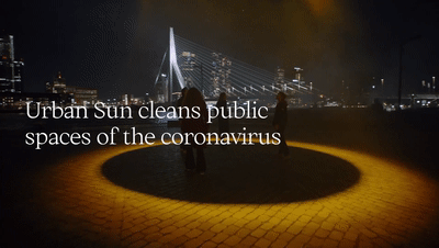 荷蘭藝術家Daan Roosegaarde所在的工作室推出了一件利用紫外線對室外空間進行消毒的燈光藝術裝置《Urban Sun》,是第一個針對公共空間清除冠狀病毒的研究項目。