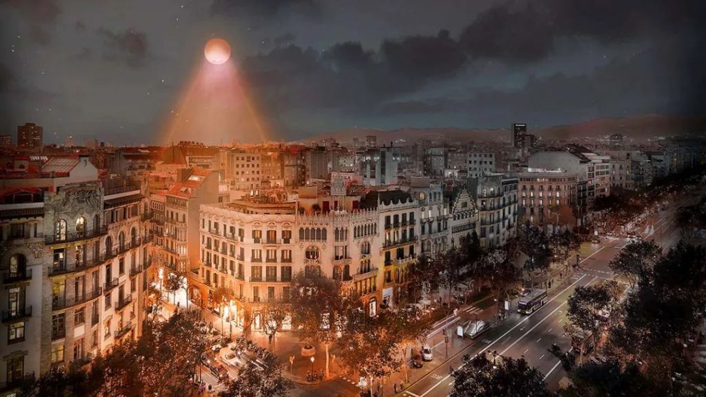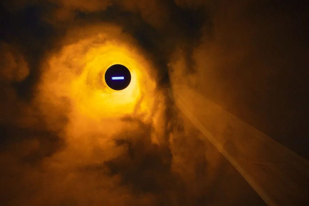 在白天,光滑的二色表面反射天空和周圍的環境,創造了一個超現實的空間,并引發了深刻的連接體驗。