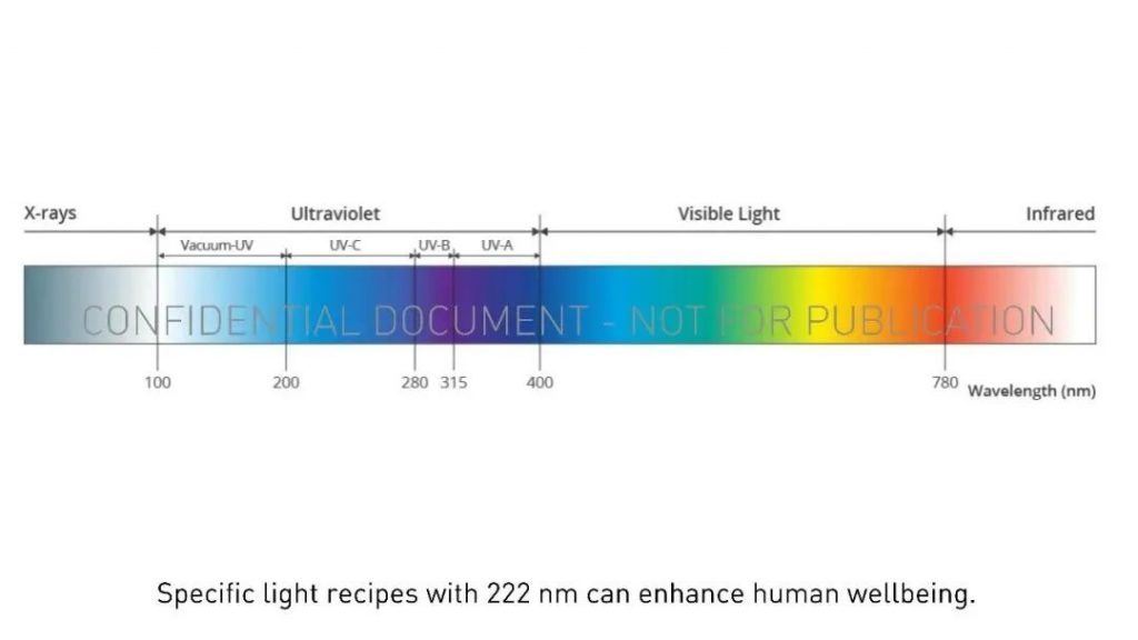 盡管傳統的254nm紫外線有害,但這種特定的222nm的紫外線被認為對人和動物都是安全的。兩者均能有效殺死水中和表面上的空氣中的病毒,這是絕大多數Covid-19傳播的原因。