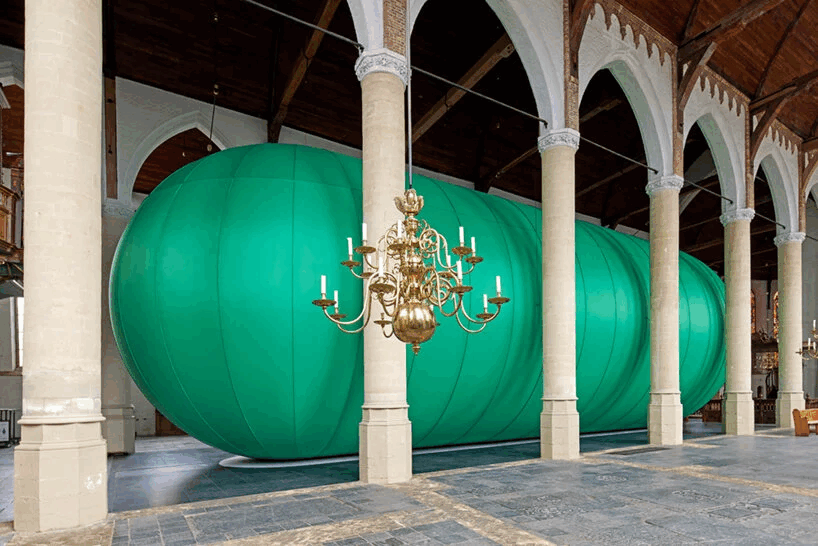 以巨型作品聞名的藝術家Florentijn Hofman在博物館內的哥特式教堂中安裝了他第一個大型室內充氣藝術裝置《City Cocoon》。