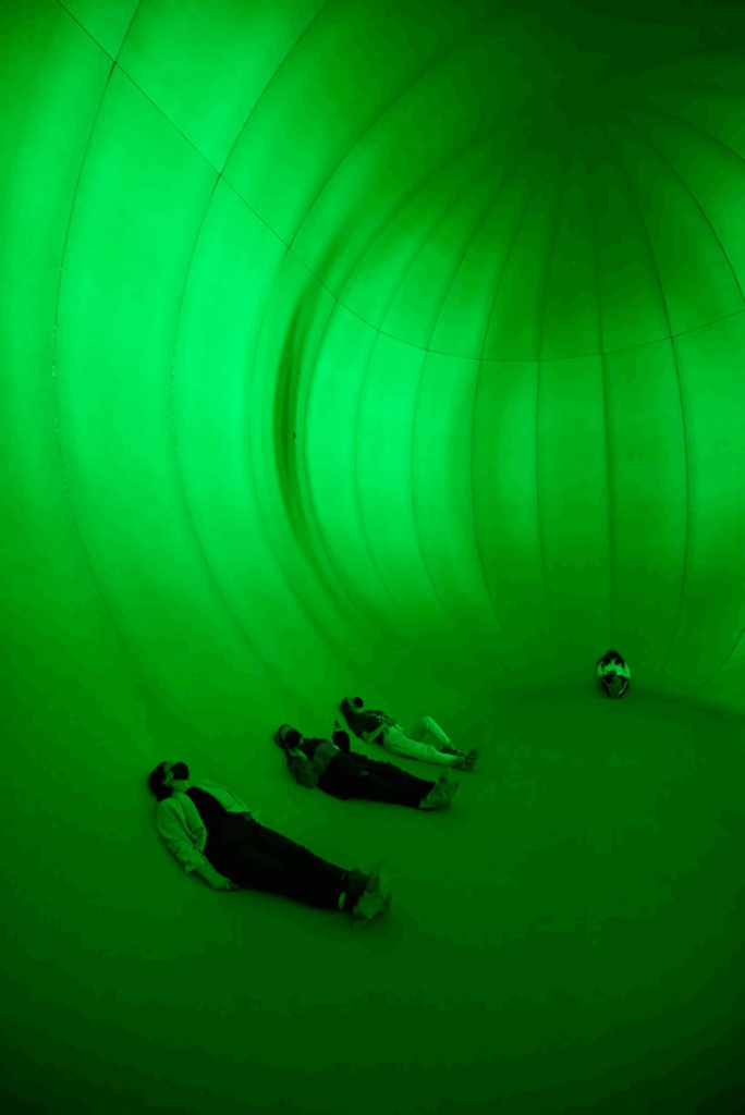 在當地范圍內,游客將通過綠色陰霾感知世界;在更大的范圍內,該作品試圖象征社會,小心翼翼地從冠狀病毒大流行的陰影中走出來。