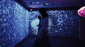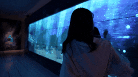 在流體墻上觸摸投射在墻上五顏六色的液體時(shí),顏色開始混合,并從中創(chuàng)造出各色的水母。