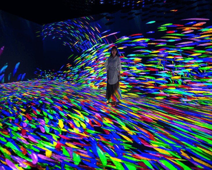 由魚群編織而成的水下奇跡,龐大的魚群開始不斷移動(dòng),游客的身影變成魚,再與之展開互動(dòng),和魚群一起暢游深海。