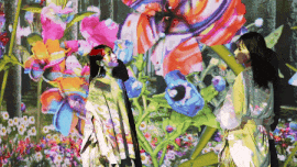 在沉浸式互動(dòng)墻前的四季鮮花中找尋只屬于自己的花,解碼專屬花語,隨著移動(dòng)的步伐,腳下的花朵不斷發(fā)生變化、出現(xiàn)發(fā)光的花朵。