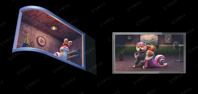 裸眼3D屏中,柴犬在追殺主角雄蝸牛的時候,發現在2D屏幕的白富美雌蝸牛并為之傾倒,為爭得美蝸歸,柴犬率先躍出3D屏,并跳入隔壁靜態水果廣告牌,采摘一盆鮮果后跳入2D屏幕送給雌蝸牛,討其歡心。