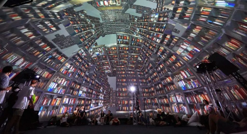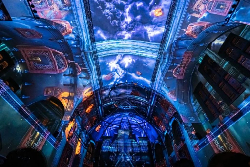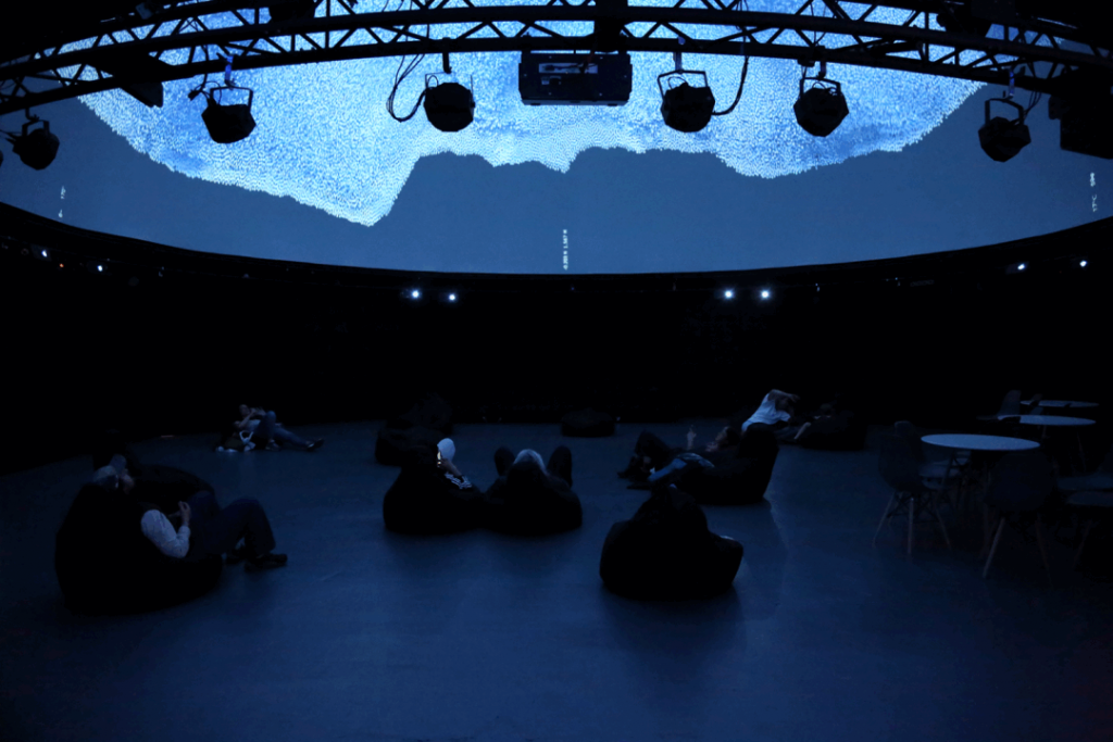 整個(gè)建筑的圓頂裝有252臺(tái)投影儀,形成了沉浸式360度投影表面,館內(nèi)外的參觀者均可看到,這使得它成為世界上最大的360度投影面。