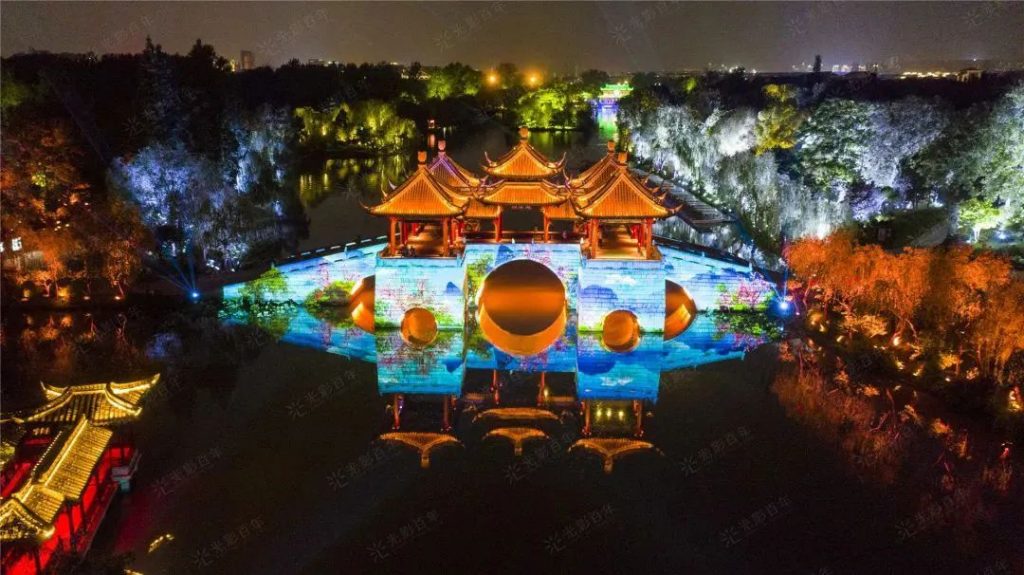 -《二分明月憶揚州》沉浸式主題夜游,主線3.5公里,最佳體驗時長約90分鐘;以美輪美奐的揚州瘦西湖為載體,融合唐風詩韻主題及數字創意,一步一景一唐詩一故事,展開“天下三分明月夜,二分無賴是揚州”的煙云畫卷。強化揚州地域文化傳播,提升游客對國粹唐詩文化的深入理解及感知,延續出夜晚中的月下揚州瘦西湖;