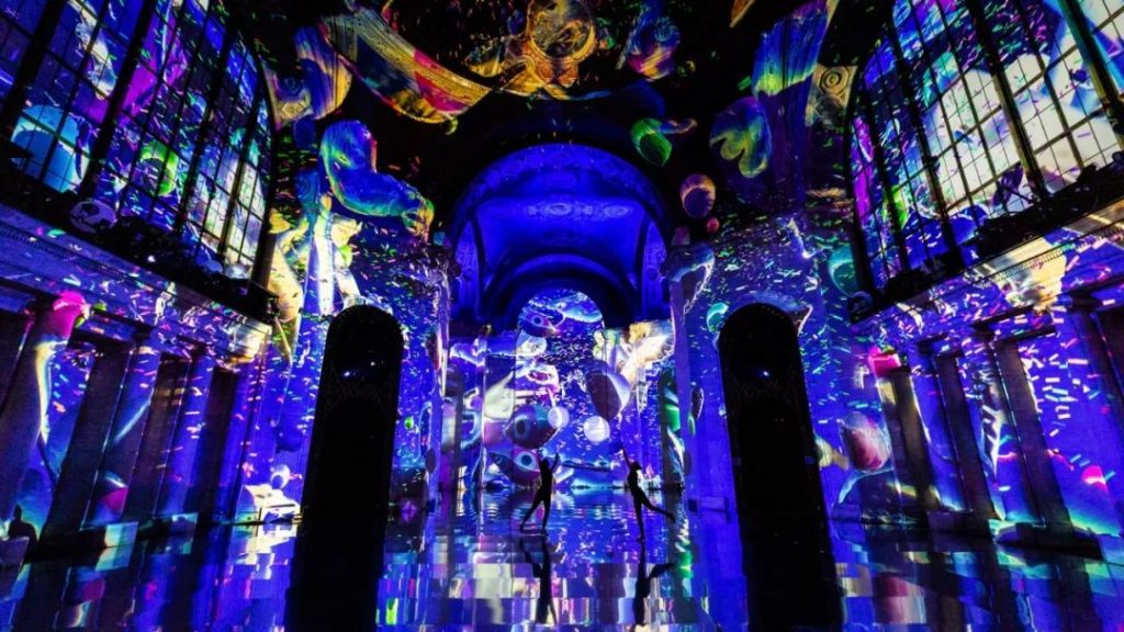 Culturespaces是法國著名的博物館與展陳工作室。他們將位于法國第二次世界大戰(zhàn)的潛艇基地改建成了世界最大的數字藝術中心—光之水池(Bassins de Lumières)。展館空間總投影面積為12,000平方米,多達90臺視頻投影儀和80個揚聲器,用來呈現藝術家的作品。