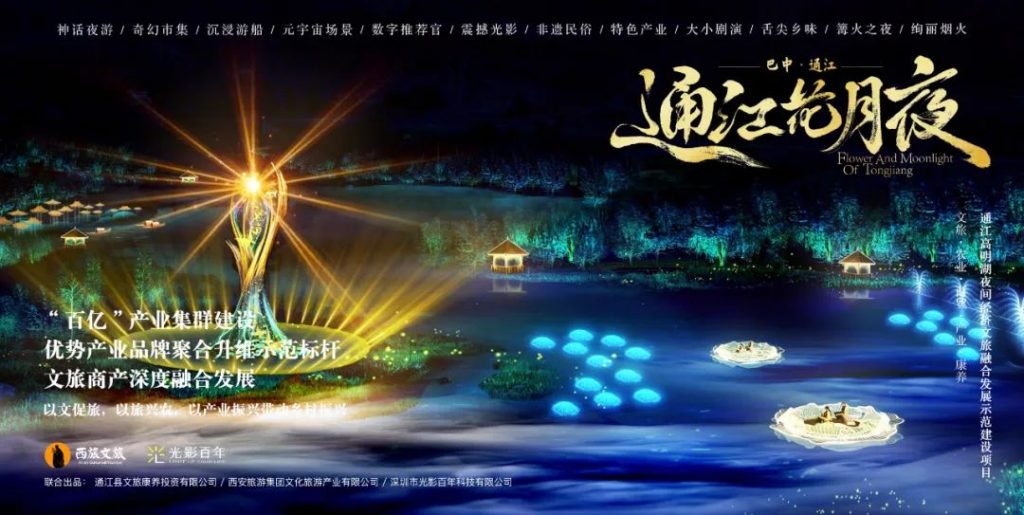 光影百年中標通江縣高明湖夜間經濟文旅融合發展示范項目(行浸式水上夜游及元宇宙公園奇幻花月夜項目)