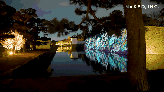 每年的春季,《NAKED FLOWERS》在二條城上演的夜櫻世界,一般會設置10個左右的體驗點位和光影作品,再加上庭園中重新調整的燈光,虛擬與現實的櫻花交織出的花瓣雨,在春暖花開的季節帶給人們夢幻景色。