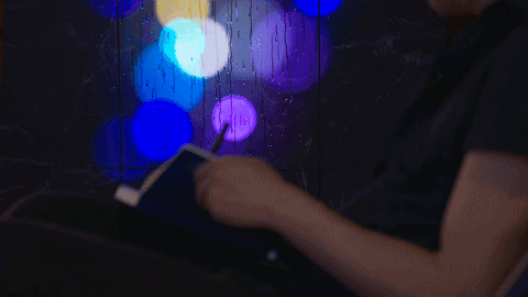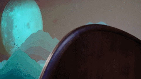 投影的月亮由一個(gè)咖啡杯控制——移動(dòng)咖啡杯,月亮也會(huì)隨之移動(dòng)。此外,游客還可以通過(guò)翻轉(zhuǎn)沙漏,來(lái)改變風(fēng)景壁畫(huà)。