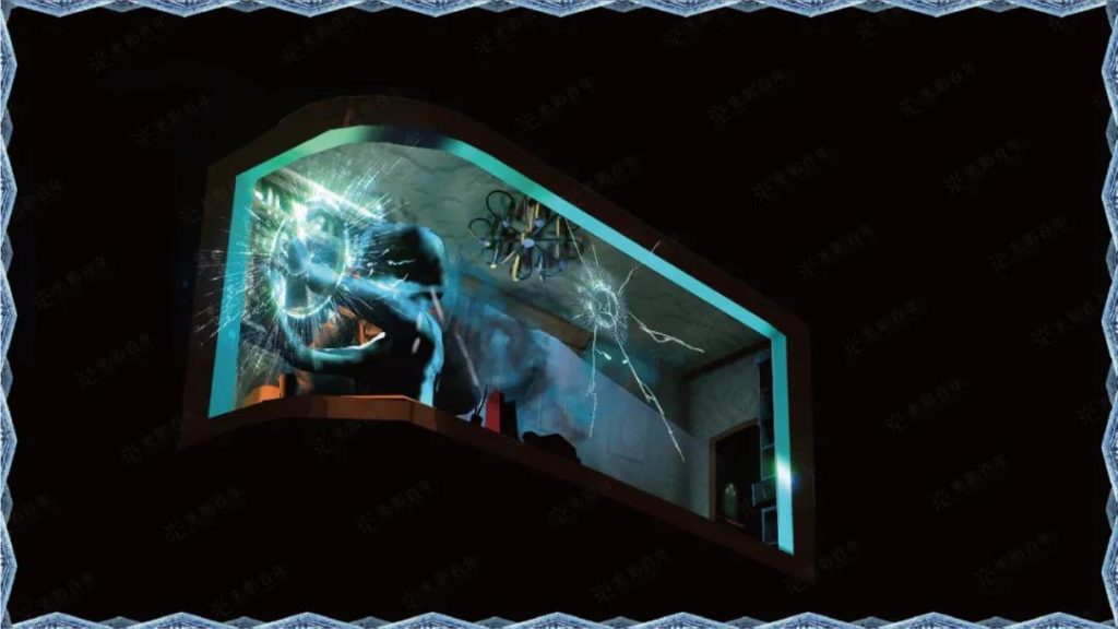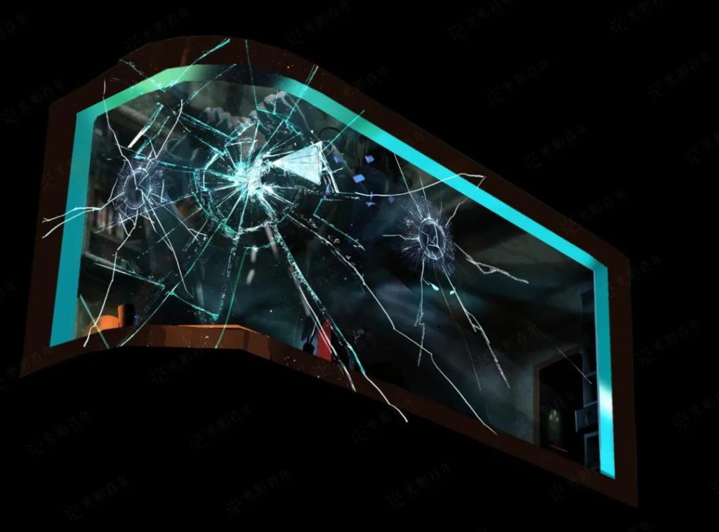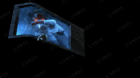 采用曲面反貼操作,將動畫逐塊拆解,并逐一反貼至模擬裸眼3D屏上,高精度輸出精彩畫面。