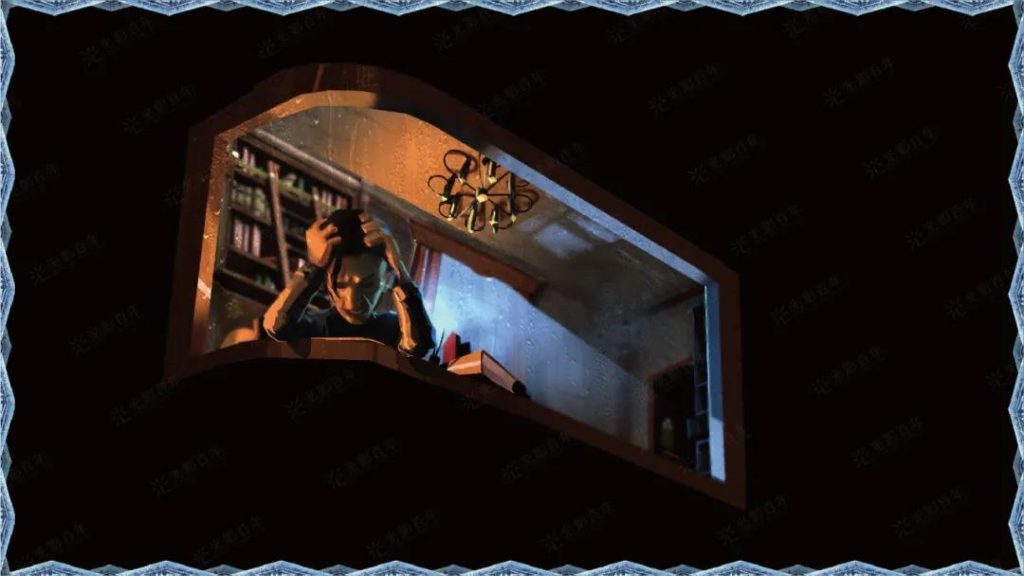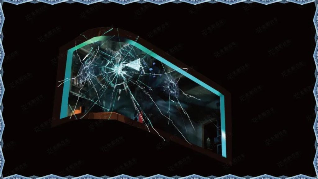 影視制作團隊根據(jù)分鏡設(shè)計及最佳視角,進行強立體感的三維場景搭建,例如設(shè)計書桌作為畫面前景,既符合游戲的劇情,又突出場景的立體空間感;在特效解算上,特別是玻璃破碎的這一關(guān)鍵場景上,為了呈現(xiàn)最具沖擊力的破碎效果,我們對破碎點進行反復(fù)的測試;以及其他:材質(zhì)燈光渲染,頭發(fā)、服裝、煙霧,等特效解算。