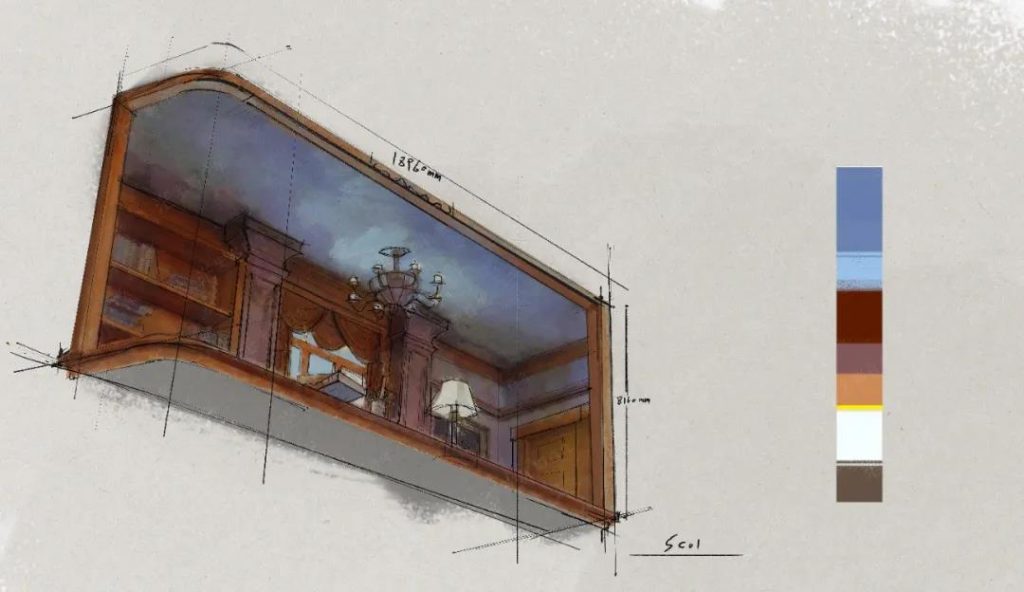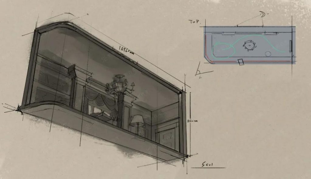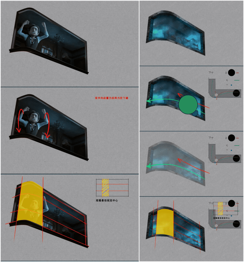 “將故事劇情與曲面屏最佳視角原理相結(jié)合,營造場景氣氛,通過角色人物表達情緒,力求將劇情、情緒與氣氛逼真的傳遞給觀眾,帶動觀眾浸入其中。”——美術(shù)設(shè)計組