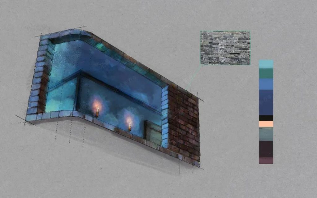 此次創(chuàng)作整體配色結(jié)合游戲元素偏暗調(diào)搭配,角色表情根據(jù)情緒發(fā)展設(shè)計,搭配營造緊張感的煙霧、燭光、磚塊、光影,等元素,以及材質(zhì)、比例、走位、特效、燈光、排版,等都與游戲風格及劇情做高度匹配設(shè)計。