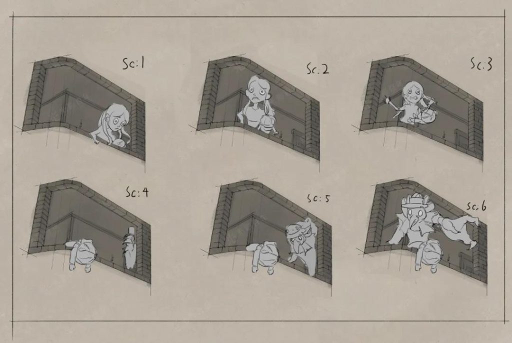 在畫面風格上,我們首先對《第五人格》設(shè)計語言進行了深度研究,在延續(xù)了荒誕哥特的基調(diào)上,同時結(jié)合本土化運營的需求,融入了日本kawai的美學(xué)風格,并根據(jù)曲面裸眼3D屏最佳視角,開始腳本創(chuàng)作。