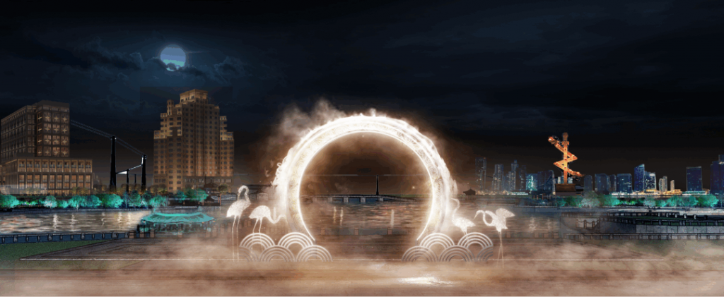后河·夢回廬陵景區(qū)位于贛江之畔,地處吉安市中心城區(qū)腹地,通過建筑空間塑造、山水景觀重構(gòu)、多媒體數(shù)字手段植入,打造全域沉浸式、行進(jìn)式光影夜游體驗(yàn)。