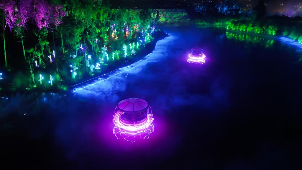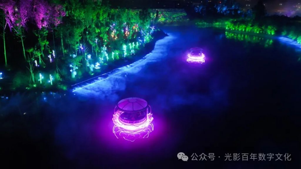 本案以民間動人銀耳愛情傳說為主線,以遠古瑰麗的神秘民俗巴文化為氛圍基調,結合自然生態秘境奇妙游、仙幻藝術裝置、銀耳IP探秘船只、主題IP情景燈光光影秀、大型巴文化水上實景演藝、大型燈光火焰音樂噴泉主題水幕秀、影視級文商旅市集小鎮造景等數字創意科技 ——呈現有主題、有故事、互動強,多層次、立體化的沉浸式夜游體驗,構建一段如夢如幻、神秘震撼的傳說探索之旅。