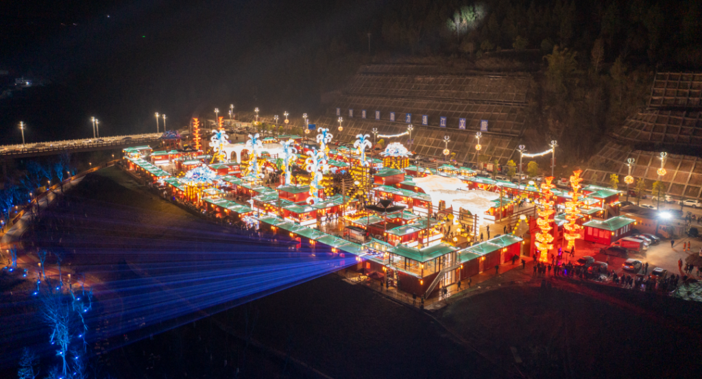在內容和細節上,挖掘通江當地虎符、戲曲等巴文化符號,融入到市集商鋪、舞臺、演員等環節中,并在游覽動線中設計創作形態各異的銀耳燈與裝飾燈,彰顯通江銀耳文化。